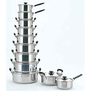 18-0ステンレス鍋モリブテン入り・チタン添加鍋本体には合厚板を使用し、ハンドルは強度を考え太目にし、取り付けも太目の鋲で強度を出し、なおかつ18-0ステンレススチール鋼モリブデン入り・チタン添加のサビにくい新しい素材の実用鍋。