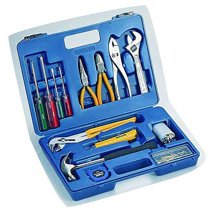 | セット内容 | ●ラジオペンチ ●強力ニッパ ●ウォーターポンププライヤ ●コンビネーションプライヤ ●スパナ…2本(8×9,10×12) ●モンキーレンチ ●カッター ●ネールハンマー ●コンベックス(長さ2m) ●小物ケース ●ドライバー…4本(大(−)100mm、(+)No2・小(−)75mm、(+)No.1) ●セットドライバー(ハンドル、のみ、キリ揉、キリ突、(+)No2・小(−)5mm、鋲抜) |