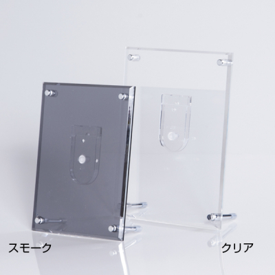 | 素材 | 本体:アクリル製 背面 t2mm 前面 t5mm、脚部:樹脂製メッキ加工 |