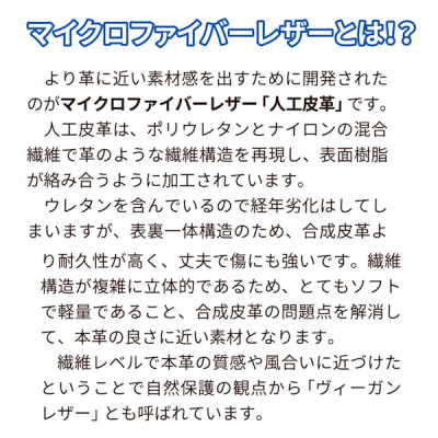 | 素材 | マイクロファイバーレザー(ヴィーガンレザー)製 |