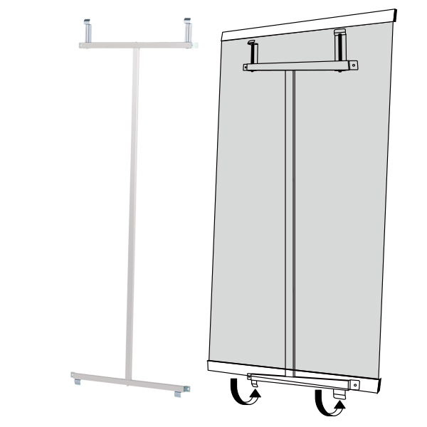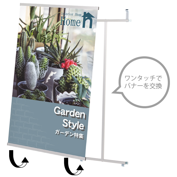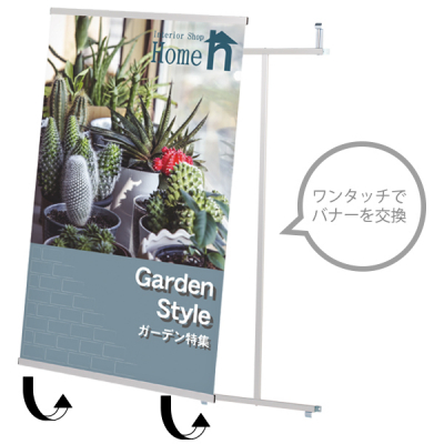 引っ掛けるだけで簡単設置。バナーもワンタッチで交換可能。