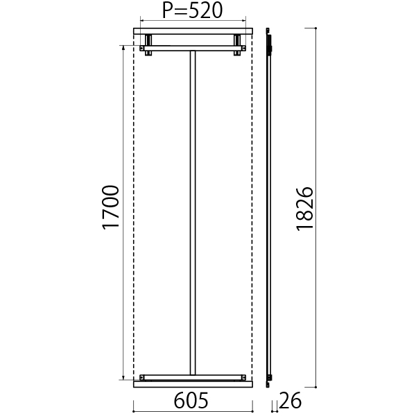 | 外寸 | W605×D26×1826mm |