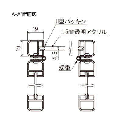 | 素材 | フレーム:アルミ押出材 アルマイト仕上 面板:1.5mm透明アクリル コーナー:亜鉛ダイカスト塗装仕上 |