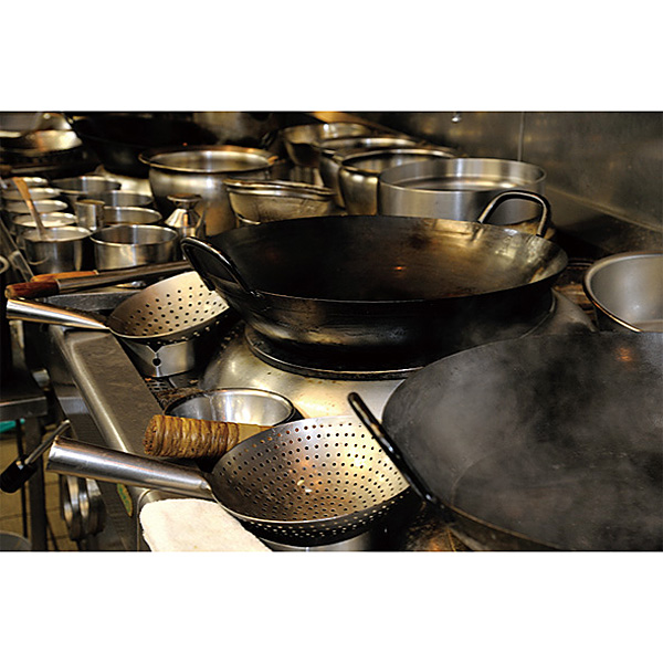 数千回叩てできる中華鍋。丈夫で熱伝導がよく、叩く事により表面の凹凸により油なじみがよくなり焦げつきにくくなります。