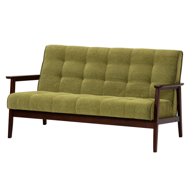 ダークブラウンのフレームと少し落ち着いたモスグリーンの組み合わせがオシャレなソファーです。
