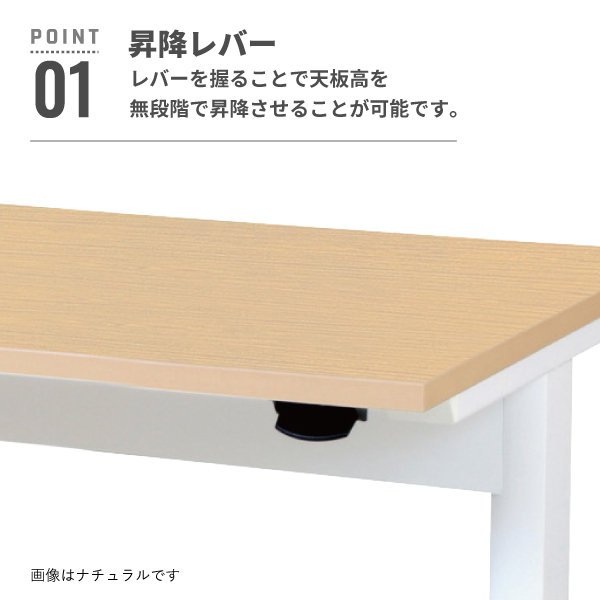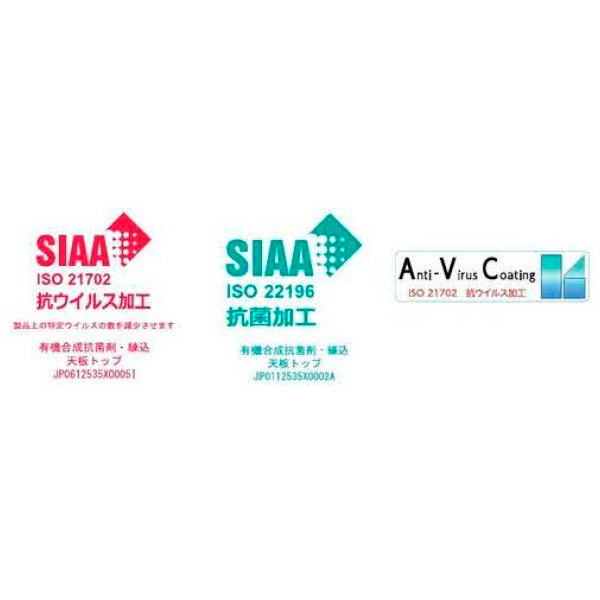 | 素材 | 天板:抗ウイルスメラミン化粧板(フラッシュ加工)抗ウイルスABSエッジ、天板裏:抗ウイルスバッカー、フレーム:スチール粉体塗装(ホワイト) |